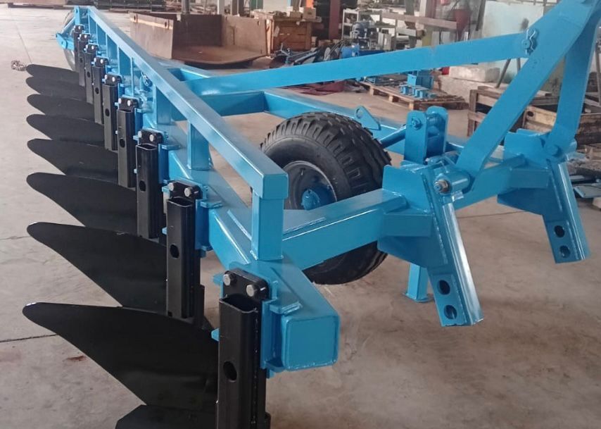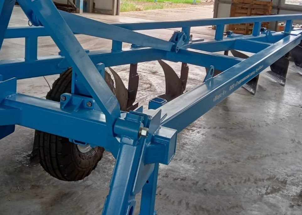 Стойка 9 ставиться вперед, что позволяет увеличить расстояние между бороздой на 30 см. Если по каким-либо причинам трактор не тянет, просто уберите переднюю стойку и получите плуг 8*40. Ширина захвата 9*40=3 600м