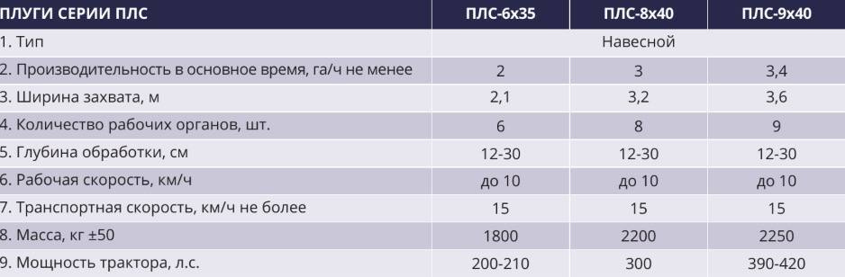 Конкурентные преимущества плугов серии ПЛС: