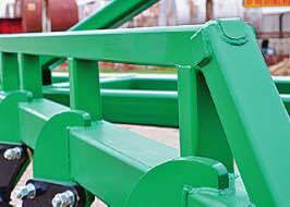 -Производство рамной конструкции из профильной трубы150х150х8 в сочетании с фермой, а также жесткой конструкцией центральной тяги и уздечек позволяет увеличить прочность и надежность плуга. Орудие может эксплуатироваться в самых тяжелых почвенно-климатических условиях.