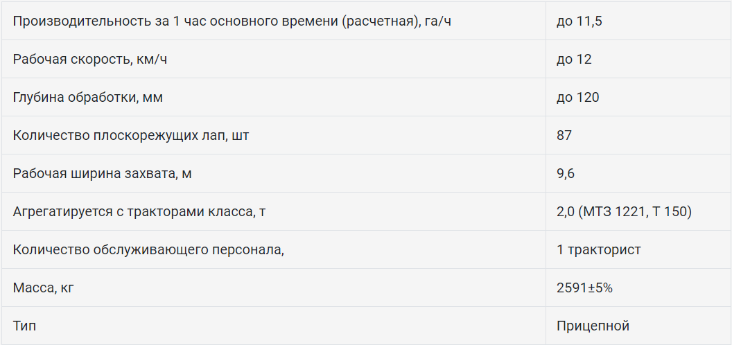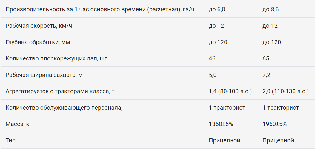 Глубина обработки 5-22 см. в зависимости от почвенных климатических условий.
