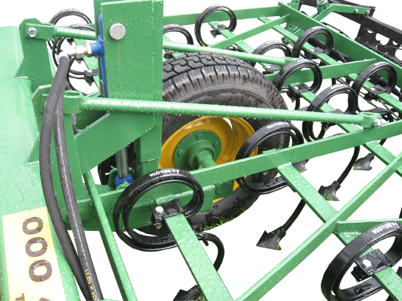 Двухбалочная рама в соединении с параллельно закреплёнными вогнутыми дисками и катком позволяет легко регулировать рабочую глубину и автоматически обеспечивает точное заглубление. Корпус подшипника на катках FKL c масленкой и специальным уплотнением для работ в полях.